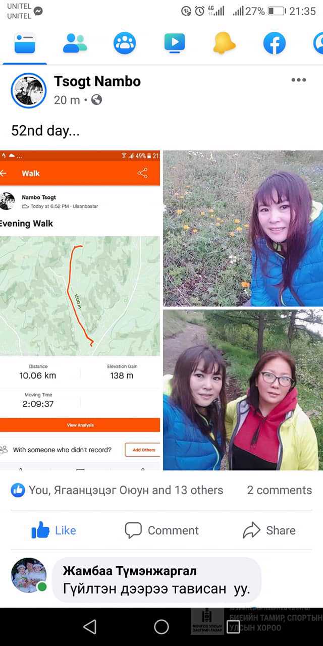 2021 оны 06 дугаар сарын 17 ны Өглөөний мэнд. Дасгал хөдөлгөөн хийцгээе. Идэвхтэй хөдөлгөөнийг дэмжих сарын аян 2021.06.02-30- ны өдрүүдэд улс орон даяар зохион байгуулаглаж байна. Алхаж