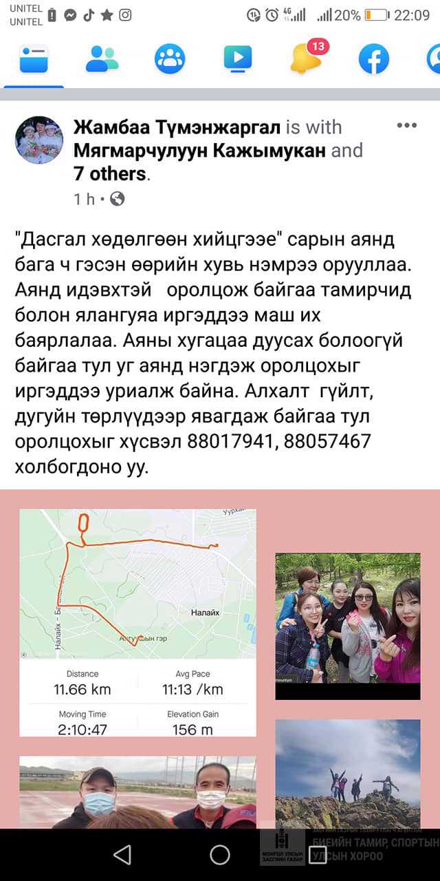 , идэвхтэй оролцож дасгалаар дархлаагаа дэмжиж байгаа Налайхчууд Та бүхэндээ амжилт хүсэе. баярлалаа.
