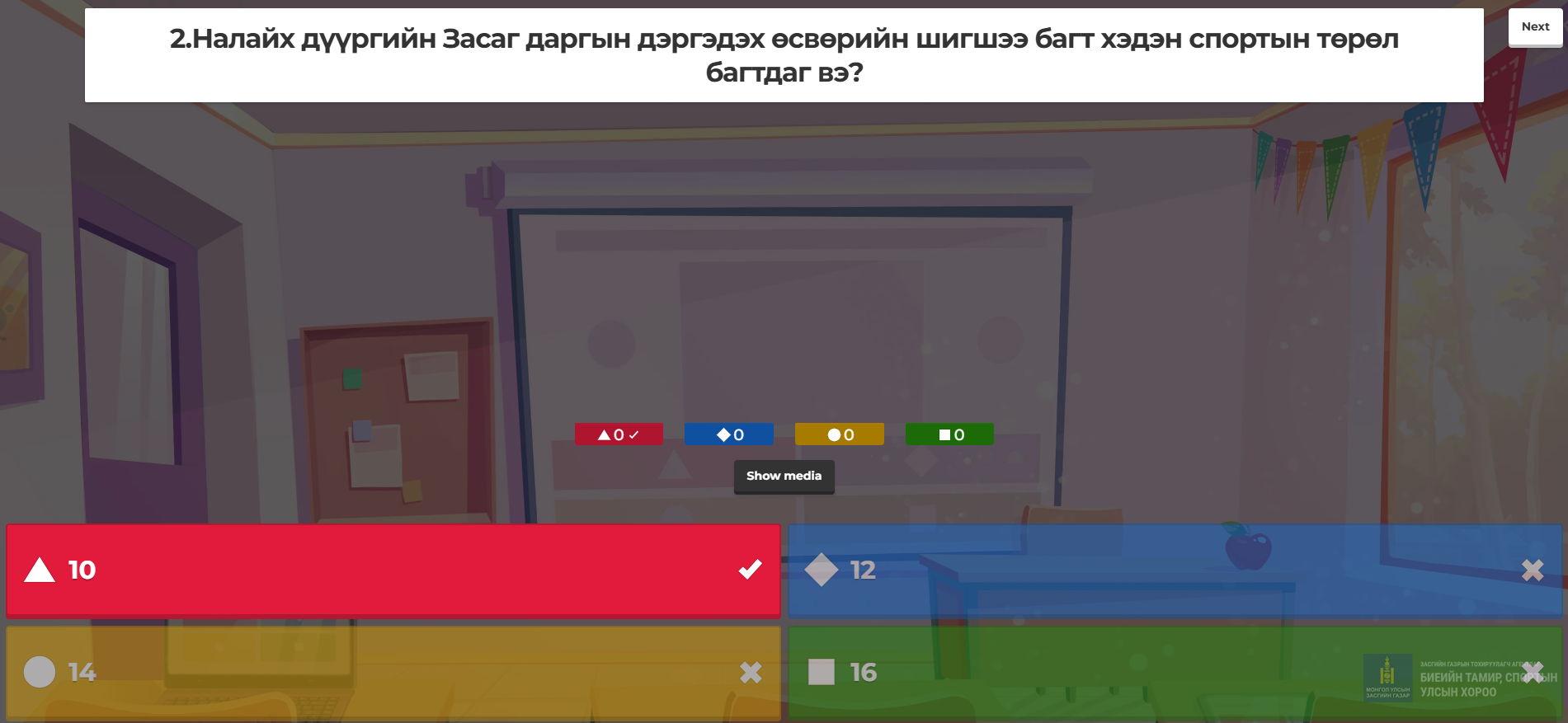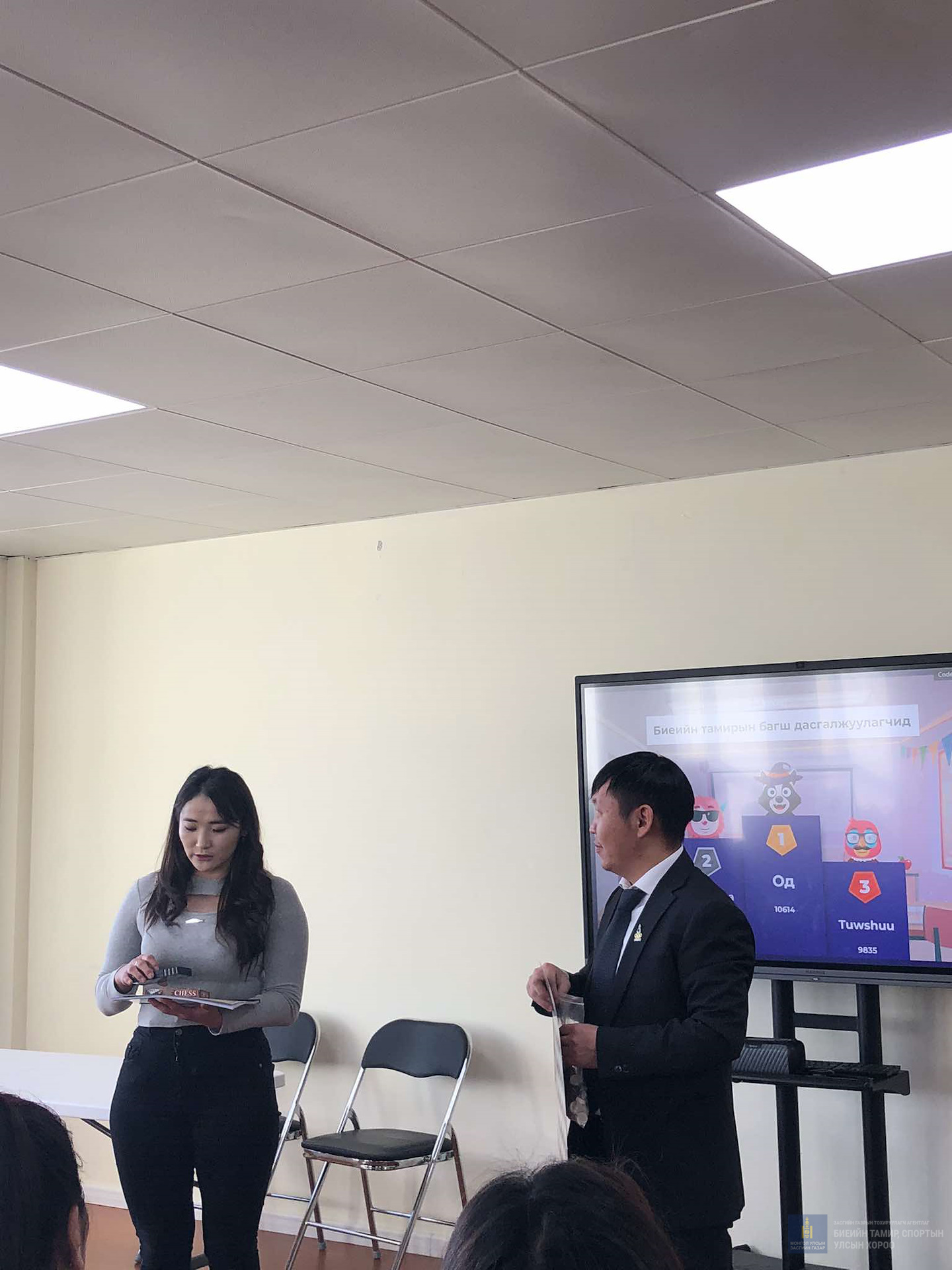 Асуулт хариултын тэмцээний 1-р байранд Хос-Уянга сургуулийн биеийн тамирын багш З.Отгондулам, 2-р байранд 119-р сургуулийн биеийн тамирын баг Г.Отгонтуяа, 3-р байранд Эрдмийн-Оргил цогцолбор сургуулийн биеийн тамирын багш Б.Түвшинжаргал нар шалгарч хамт олноо хошуучиллаа.